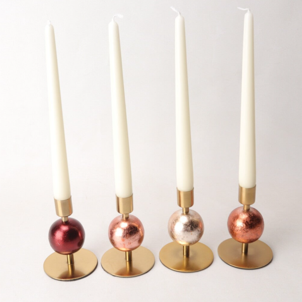 Edle Kerzenständer aus Messing in Bordeaux, Silber, Rosa und Lachs, assortiert (11x7.50 cm), ohne Kerze.