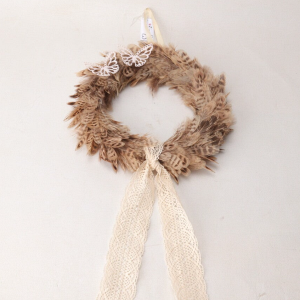 luftig leichter Tür-Federkranz mit Schmetterlingen und Häckelband